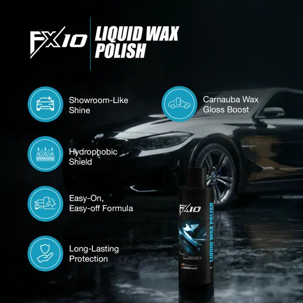 FX10 Liquid Wax Polish is a premium liquid spray engineered for rapid application, delivering a deep, mirror-like finish with lasting protection. Infused with natural Carnauba Wax, this formula instantly boosts gloss and depth while creating a durable hydrophobic shield. It’s the perfect DIY solution for enhancing paint color, concealing minor imperfections, and defending your vehicle against environmental damage.